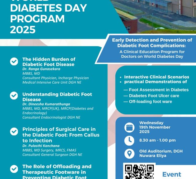 A comprehensive clinical education program for doctors focused on diabetic foot care, organized as part of World Diabetes Day 2025 by the Hill Country Clinical Society and the Diabetes and Endocrine Unit of DGH Nuwara Eliya.