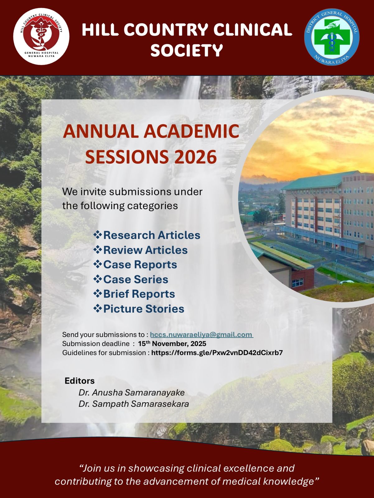 Call for Articles – Hill Country Medical Journal 2026 Posted on October 22, 2025October 23, 2025 by hc cs The Hill Country Clinical Society warmly invites your valuable contributions to the Hill Country Medical Journal 2026. We welcome scholarly work that reflects academic excellence and clinical insight.